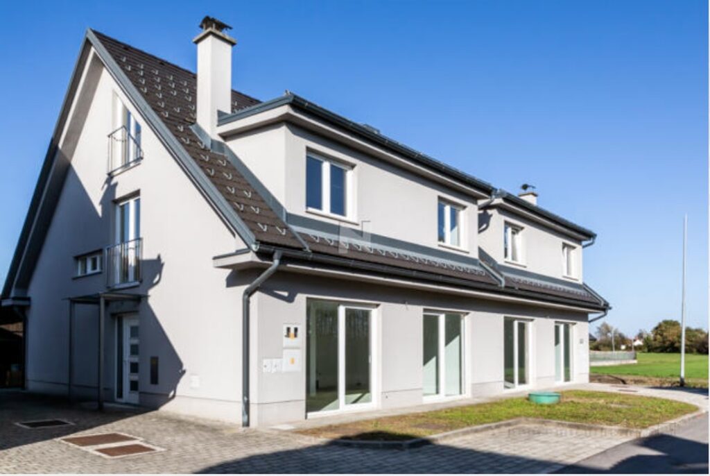 Hiši sta bili leta 2007 zgrajeni do tretje podaljšane faze, torej sta nedokončan. Imata po 195,5 kvadratnega metra uporabne površine, nekoliko se razlikujeta le površini parcel – dražja ima 255 kvadratnih metrov, cenejša 223 kvadratnih metrov površine.