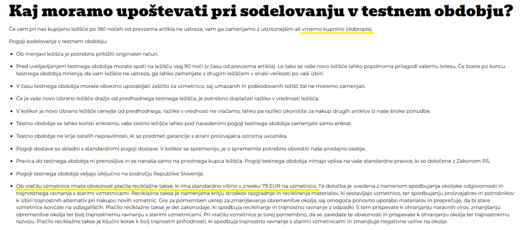 V podjetju pravijo, da so pogoji vračila, vključno z vračilom v obliki dobropisa ter povračilom stroškov logistike in reciklaže, “jasno in vnaprej navedeni v splošnih pogojih poslovanja”.